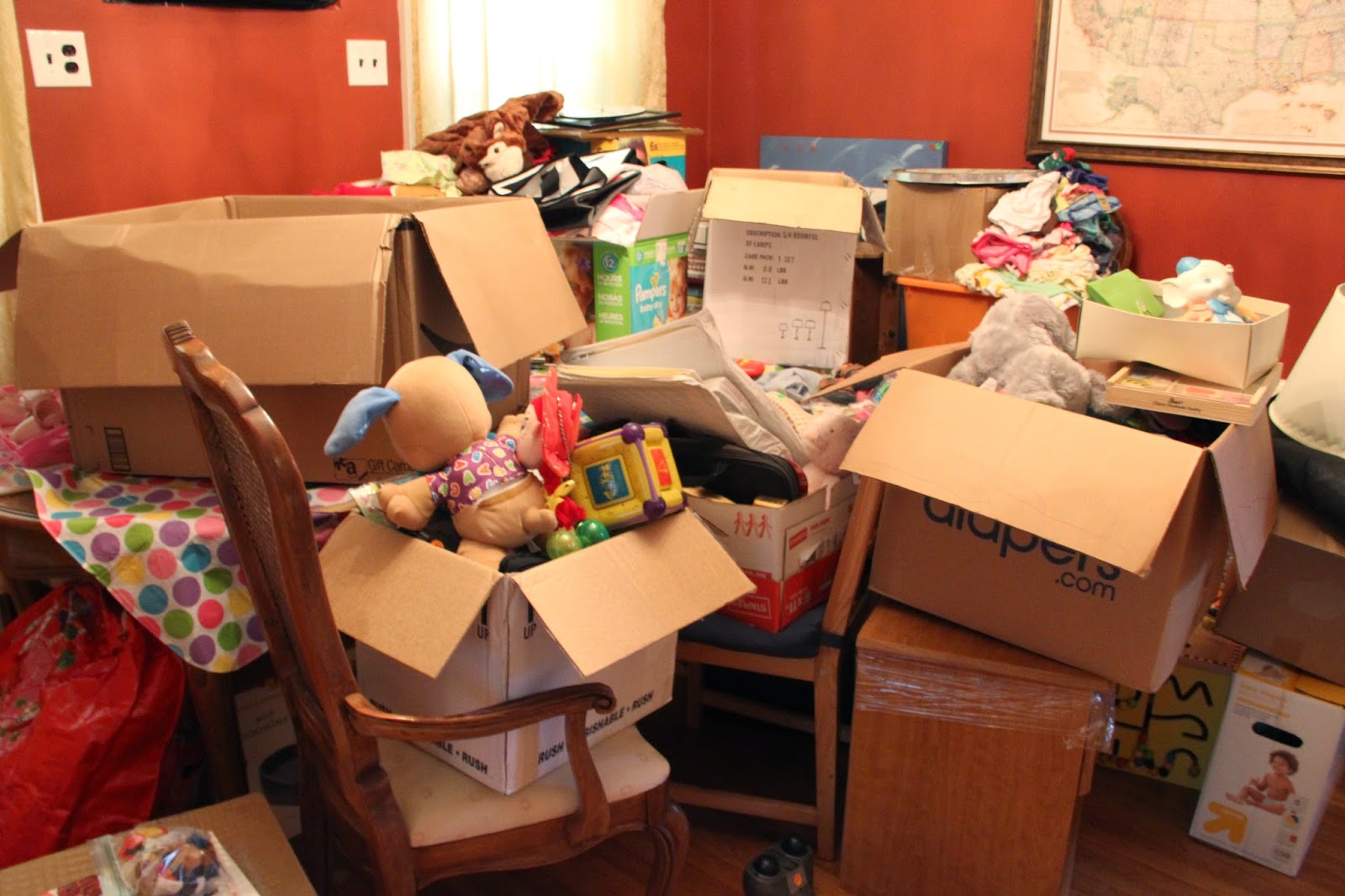 This one is tough, and not always possible, but was key for us. By not having the kids at the house we were free to do what we needed to do in setting up and talking with people. I also didn’t have to deal with tears over toys they saw in the pile. Thanks Lovey and Papa!