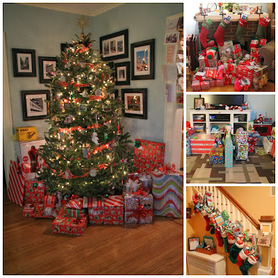 After the kids went to bed the elves worked quickly to get everything set up. Having 3 families made the living room look very festive!