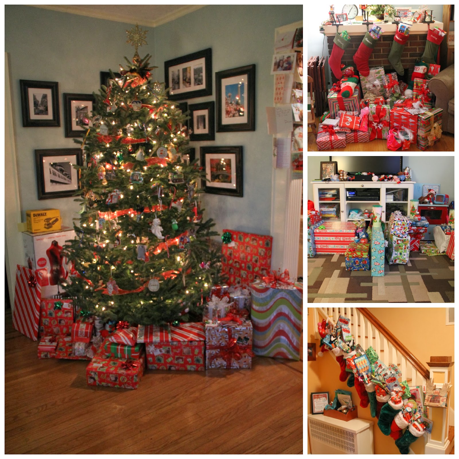 After the kids went to bed the elves worked quickly to get everything set up. Having 3 families made the living room look very festive!