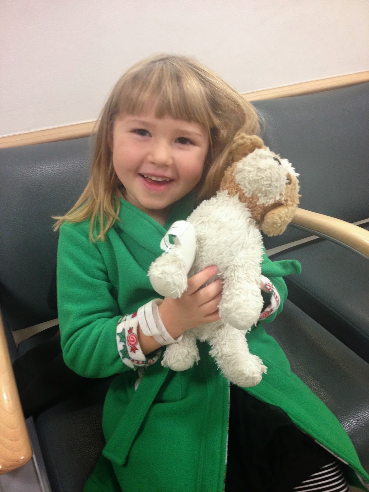 Mike took Eleanor to the hospital and it turns out she cracked her clavicle. Something very common for young kids and it also heels pretty quickly and doesn’t need a cast, she just wears a sling for a week and takes it easy. Of course the best part for Eleanor was the fact that she and Dukie got wristbands.