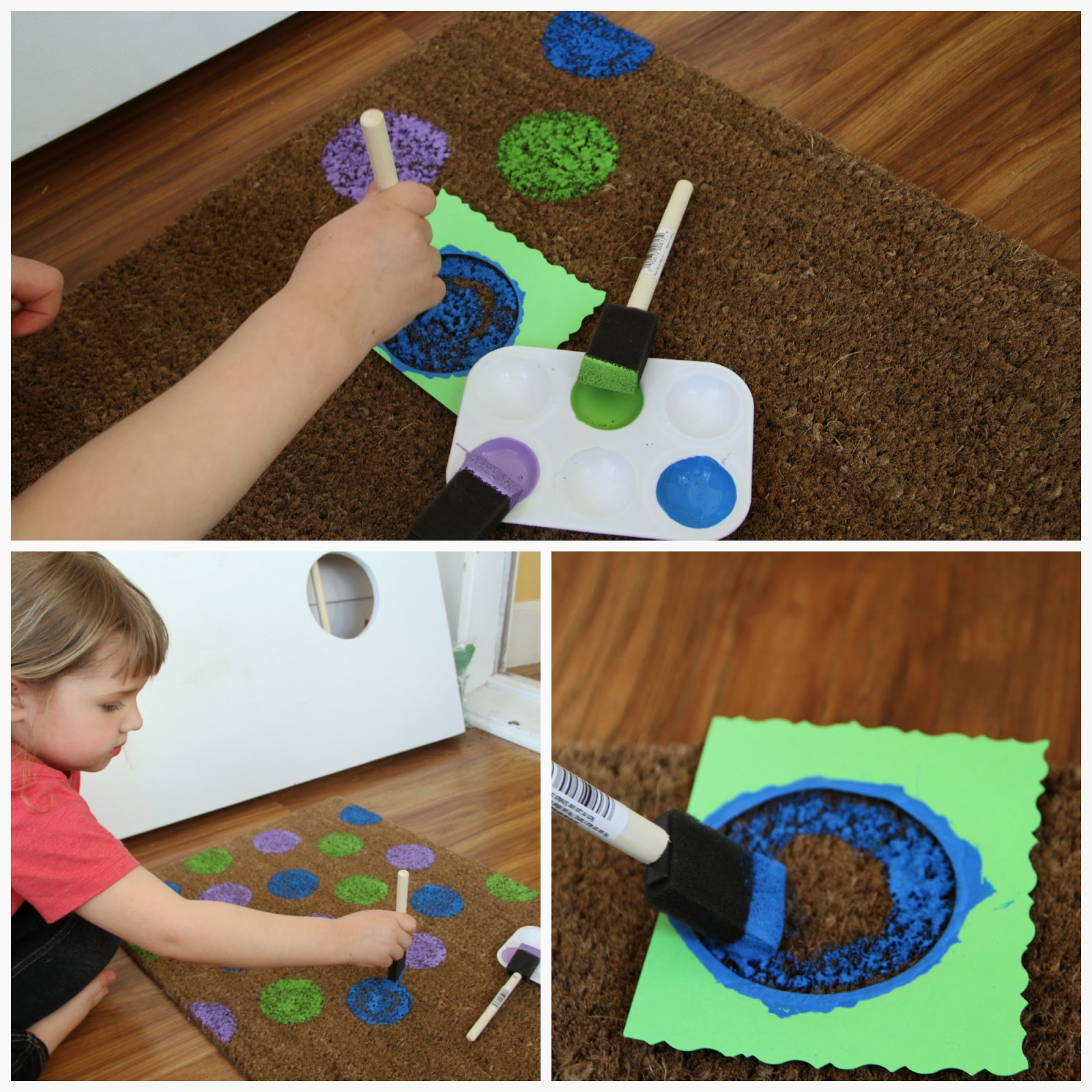 This project was super easy and fun. I loved that we made it together and Eleanor loved telling me which color and where to put the polka dots. There’s a sense of pride when we walk into the house, and she’s always telling people it’s our mat. What’s great is we can make different ones throughout the year and come up with the designs together.