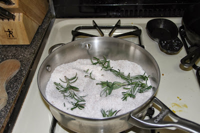 Step 2: Add a few springs of fresh Rosemary to the pan (I would say 4-5)