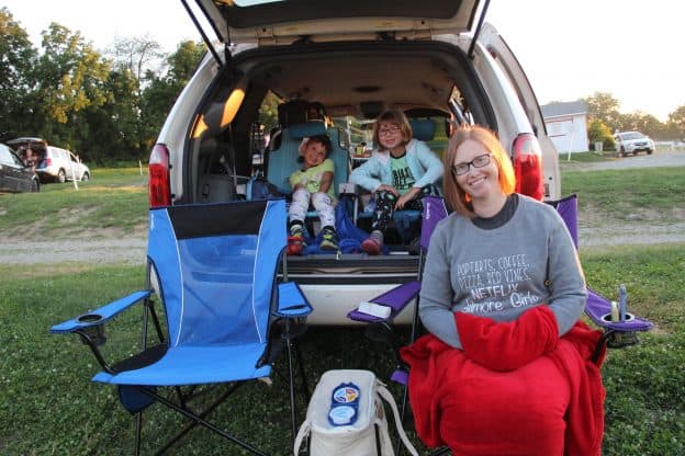 - Chairs – we brought two camping chairs (set them outside) and two beach chairs (set them in the car). The kids loved being in the car alone. We loved sitting outside together like we were on a date alone (for at least 5 minutes).