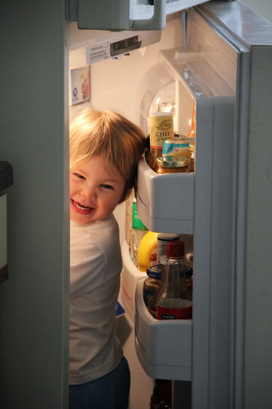 My mind immediately goes to a Punky Brewster episode where Cherie gets stuck in the fridge playing hide and seek and almost dies.  So I’m constantly telling him that we don’t play in the fridge and that the ledge isn’t made for him to stand on it.