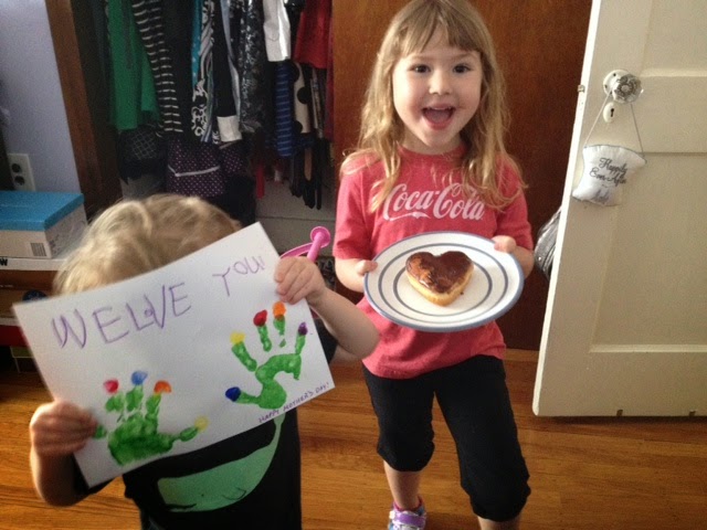 My morning starts with sleeping in, chocolate heart shaped donuts, some blush champagne and the two cutest smiling faces saying Happy Mother’s Day with a homemade card.