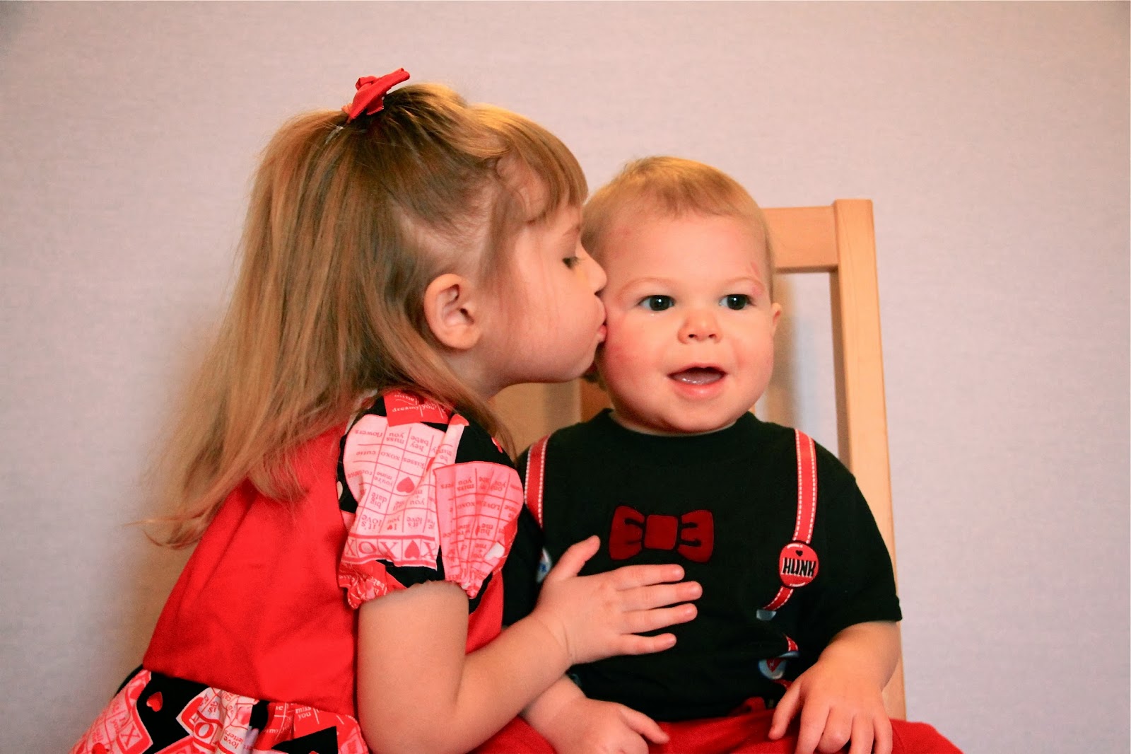 Today I attempted to do a photo shoot with my kids for Valentines day. Last year I made Eleanor a cute dress, and let her wear lipstick and got some super cute shots